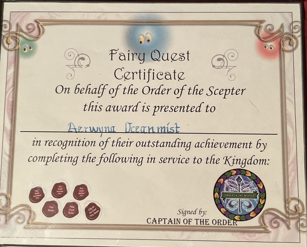Greetings Adventurer – The Order of the Scepter is tasked with protecting the Faerie Kingdoms. Here you will find several Tiny Quests that will require you to spread magic, find Enchanted Items, deciphering codes and more…