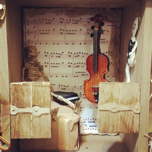 The lady is often followed by or in the company of a fellow Skeleton. He is said to be drawn to music, and is often seen sitting outside a lively saloon, tapping his foot or bobbing his head in time with the tunes being played. If one is to leave a fiddle out for him, he will take it up and play merrily all night! Do not be tempted to follow him away however, for those who do are said be driven to madness by the skill of his music, or to have their souls lured from their bodies.